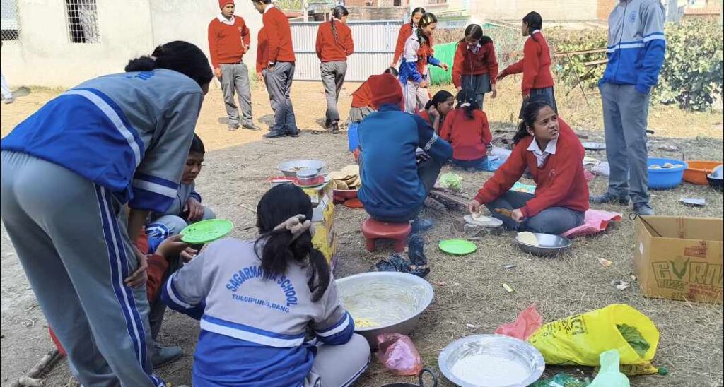तुलसीपुर उपमहानगरपालिका – ९ बेलुवा स्थित सगरमाथा बोर्डिङ स्कुलले आइतबार विद्यालय प्राङ्गणमा एक दिने ‘फुड फेस्टिबल’ अर्थात खाद्य मेला सम्पन्न गरेको छ ।विद्यार्थीहरूलाई किताबी ज्ञानमा मात्र नभएर व्यवहारिक सीप र उद्यमशीलतासँग जोड्ने उद्देश्यले विद्यालयले एक दिने ‘फुड फेस्टिबल’ अर्थात खाद्य मेलाको आयोजना सम्पन्न गरेको हो । मेलामा समुहगत रूपमा स्टलहरू राखेर विद्यार्थीहरूले आफैँले तयार पारेका विभिन्न मौलिक तथा स्थानीय परिकारहरू प्रदर्शनी एवं बिक्री समेत गरेका थिए । विद्यार्थीहरूले अर्गानिक खानाका साथै नेपाली जनजीवनमा लोकप्रिय सेलरोटी, पपकर्न, गहुँको रोटी, भाजीको साग र पकौडा जस्ता परिकारहरू तयार पारेका थिए । आफ्नै सक्रियतामा परिकार बनाउने, मेनु तयार गर्ने र बिक्री गर्ने कार्यमा विद्यार्थीहरूको उत्साहजनक सहभागिता देखिएको थियो । विद्यालयका प्रधानाध्यापक छविकुमार वलीले विद्यार्थीलाई पढाइसँगै जीवनोपयोगी सीप सिकाउन मेला फलदायी भएको बताउनुभएको थियो ।
